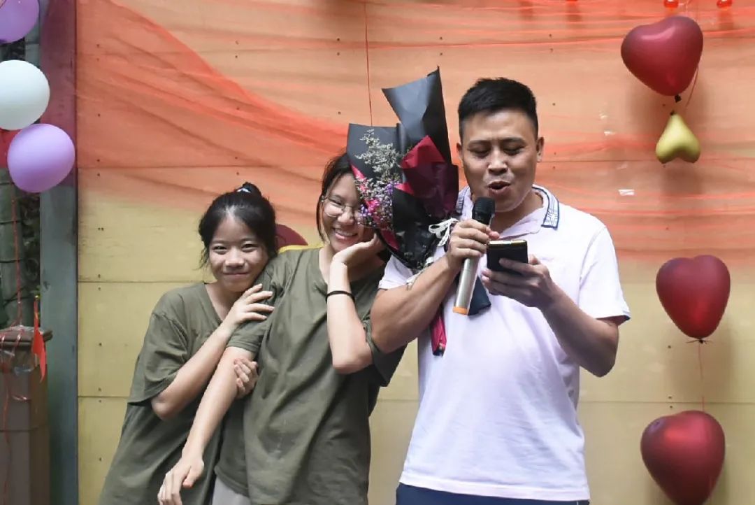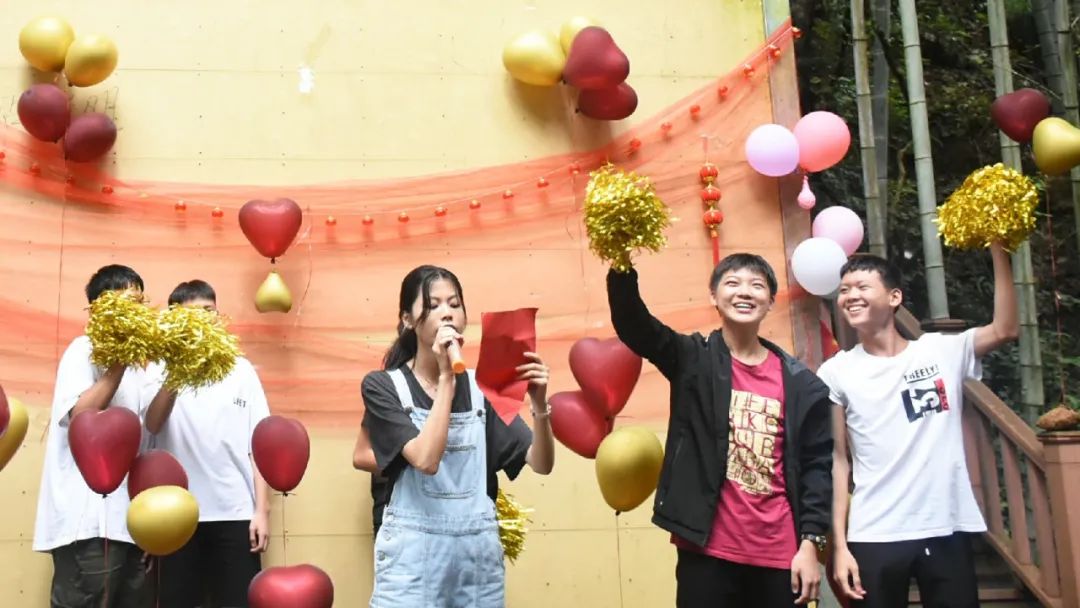 吃飽喝足便是節(jié)目表演環(huán)節(jié),老師的《日不落》活躍氣氛,現(xiàn)場(chǎng)成為打歌舞臺(tái),輕快酷炫的rap讓大家飽享耳福,搞笑有趣的廣西版《有何不可》讓大家捧腹大笑,熟悉的歌謠使得在底下的觀眾情不自禁地跟唱起來,小伙伴們組成一個(gè)個(gè)小團(tuán)隊(duì),在舞臺(tái)散發(fā)著獨(dú)具特色的光芒,歌聲夾著尖叫聲,打call聲響徹丫山,送花合影讓我們更親密了,每個(gè)人的臉上都洋溢著笑容,負(fù)責(zé)接送我們的劉老師最后也按捺不住了,唱起了動(dòng)聽的經(jīng)典歌曲《濤聲依舊》和《橋邊姑娘》。